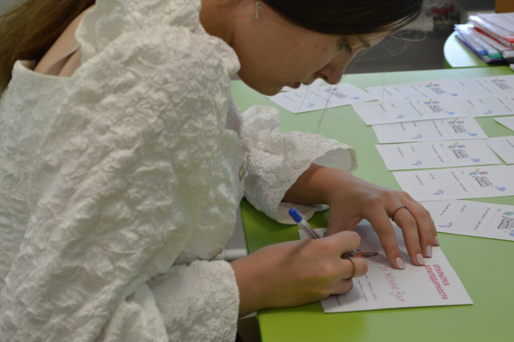 Также учащиеся заполнили специальные поздравительные открытки и вручили их любимым педагогам.