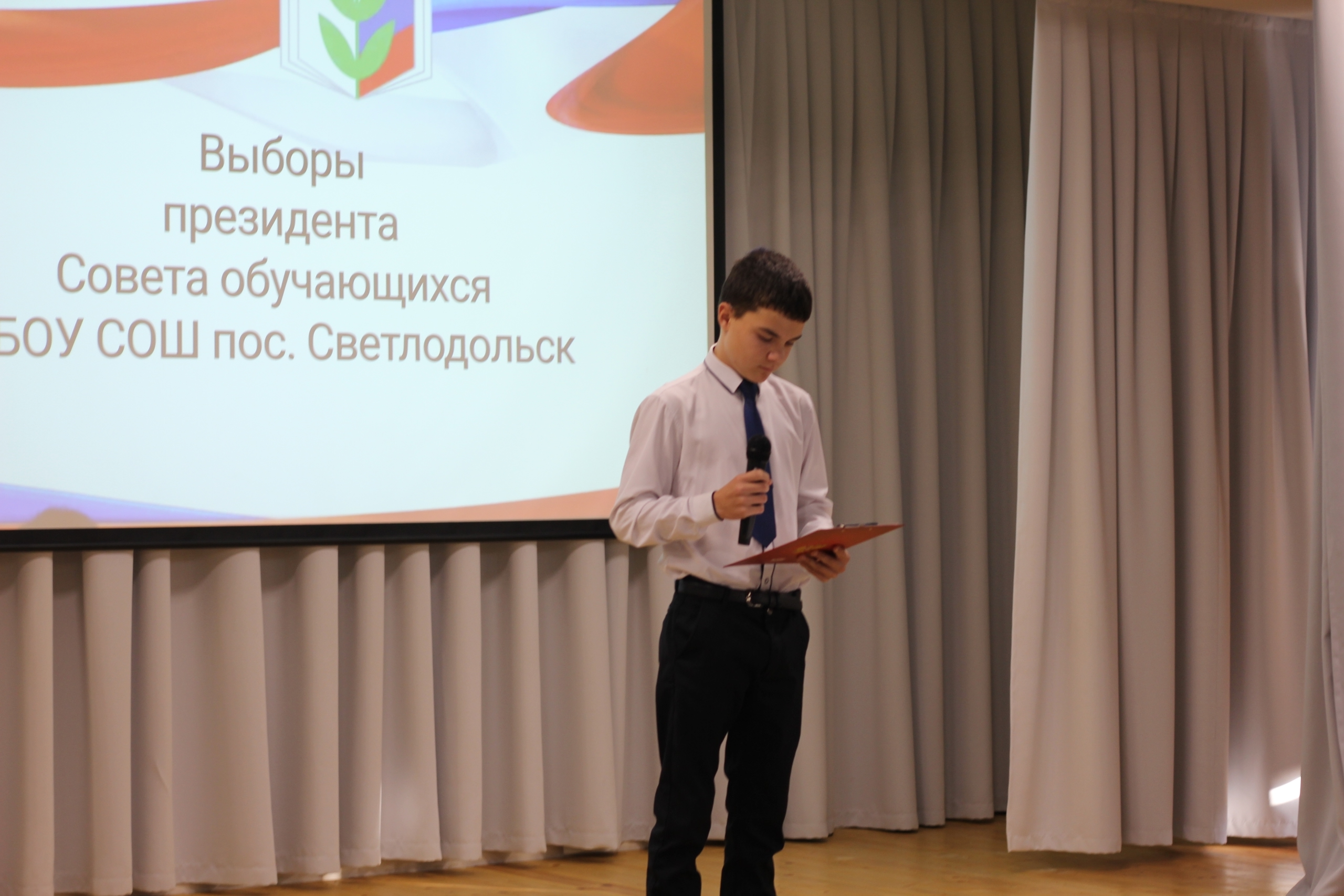 💥Главным событием дня стало объявление имени избранного президента Совета обучающихся. Им стал ученик 7 класса Третьяков Евгений. По традиции новый лидер ученического самоуправления произнёс торжественную клятву.